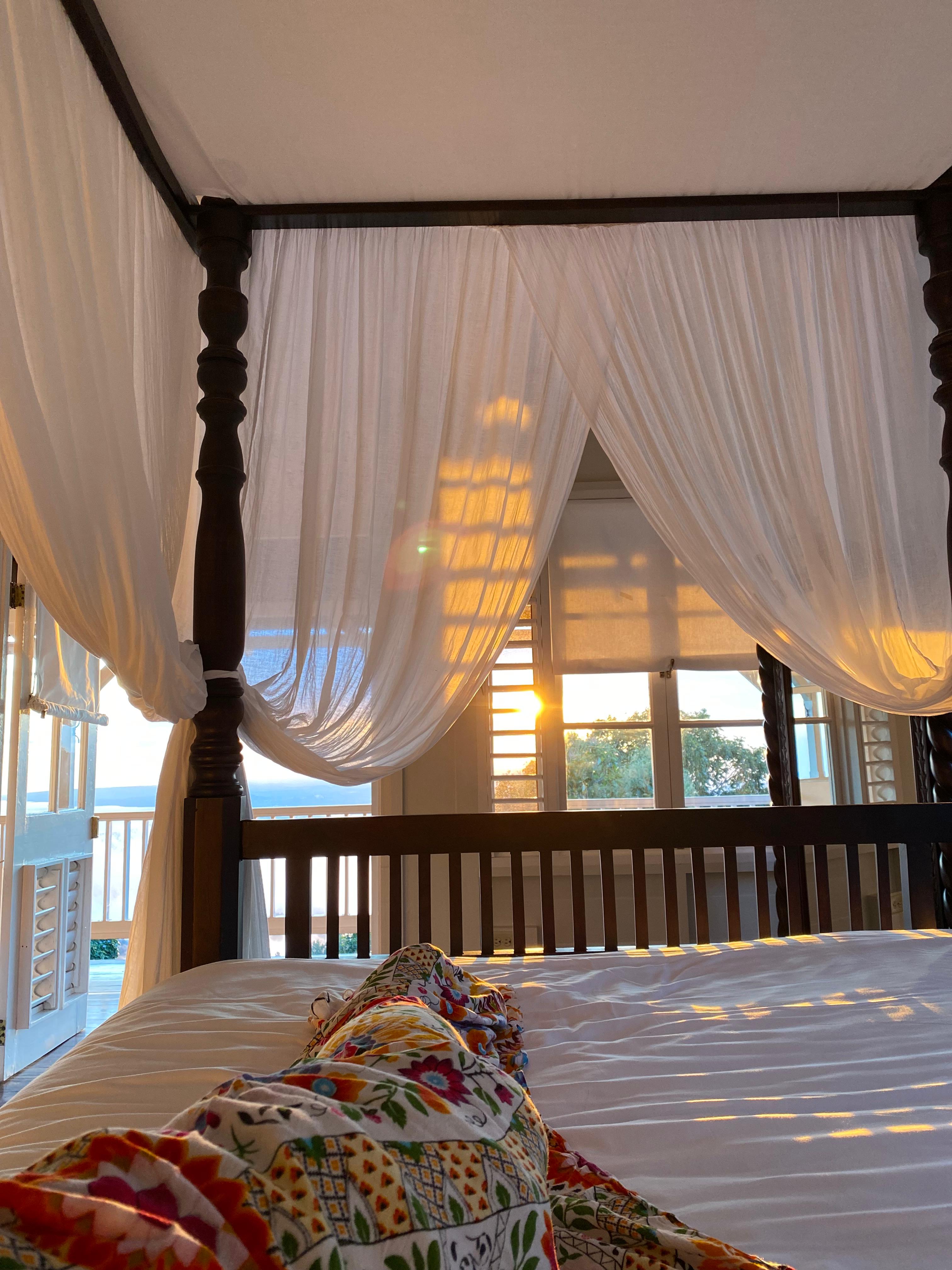 Inside Bird’s Hill, there is a small kitchenette, a nice touch when you want to stay in and relax. It’s stocked with delicious Blue Mountain coffee, so mornings start with that rich, bold flavour while you take in the misty mountain views. There’s also no TV in the room, which, in my opinion, is the best part. It’s the perfect excuse to unplug and unwind. We always bring a book, and a few games with us, Scrabble and dominoes are our go-tos and spend our evenings playing and chatting without distraction. Now that we have our daughter we realise what a luxury doing anything without distraction is!